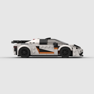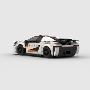 🔥 Koenigsegg One to prawdziwy przełom – pierwszy samochód o stosunku mocy do masy 1:1. W tej wersji z klocków, w białej karoserii z czarnymi i pomarańczowymi akcentami, wygląda jak maszyna stworzona do łamania rekordów prędkości. Agresywne kształty, niska sylwetka i charakterystyczne wloty powietrza nadają mu futurystyczny charakter.