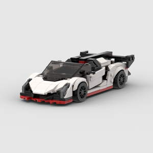 🔥 Lamborghini Veneno to czysta agresja, aerodynamika i efekt „WOW”. W tej wersji z klocków, w białej kolorystyce z czarno-czerwonymi akcentami, wygląda jak maszyna zaprojektowana wyłącznie do jednego celu – absolutnej dominacji na torze. Futurystyczne linie, ogromny tylny spoiler i potężny dyfuzor podkreślają jego ekstremalny charakter.